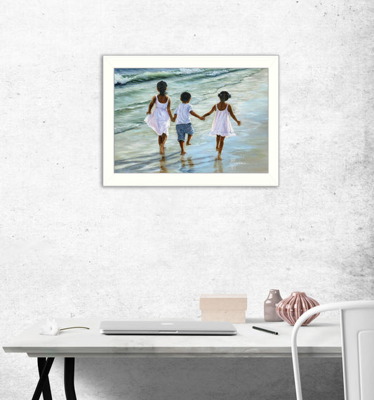 "Running on the Beach" By Georgia Janisse, Printed Wall Art, Ready To Hang Framed Poster, White Frame