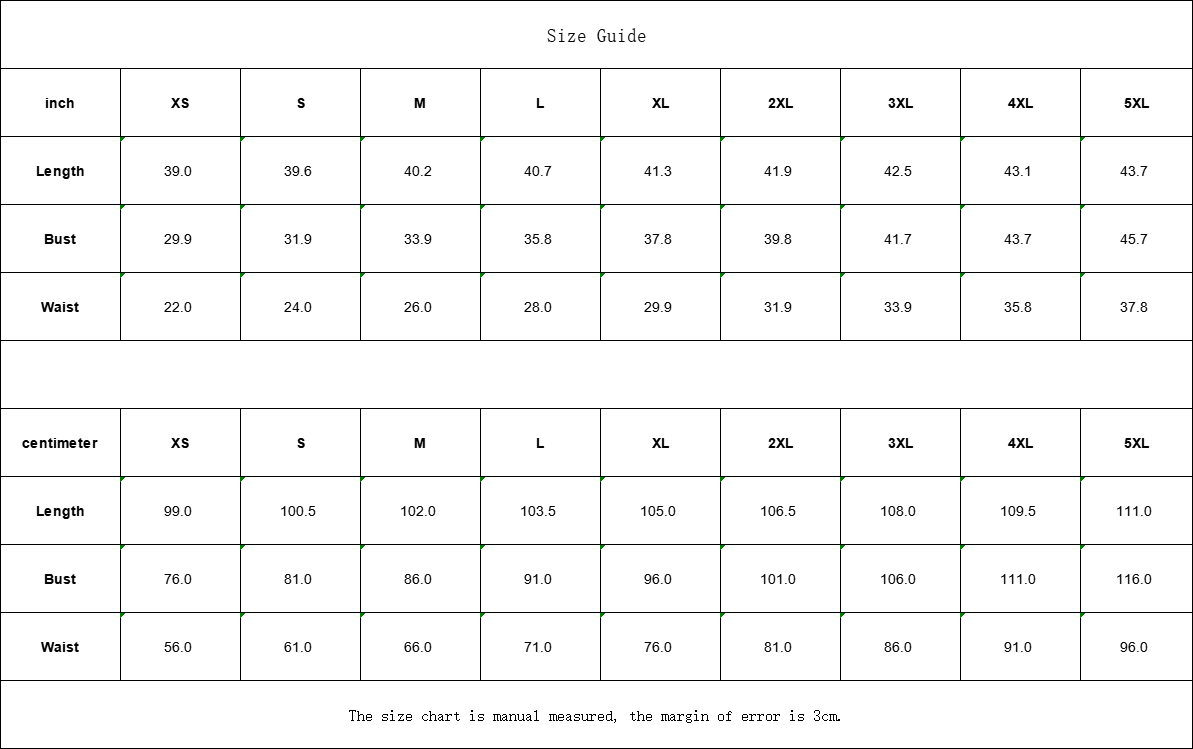 inch | XS | S | M | L | XL | 2XL | 3XL | 4XL | 5XL |